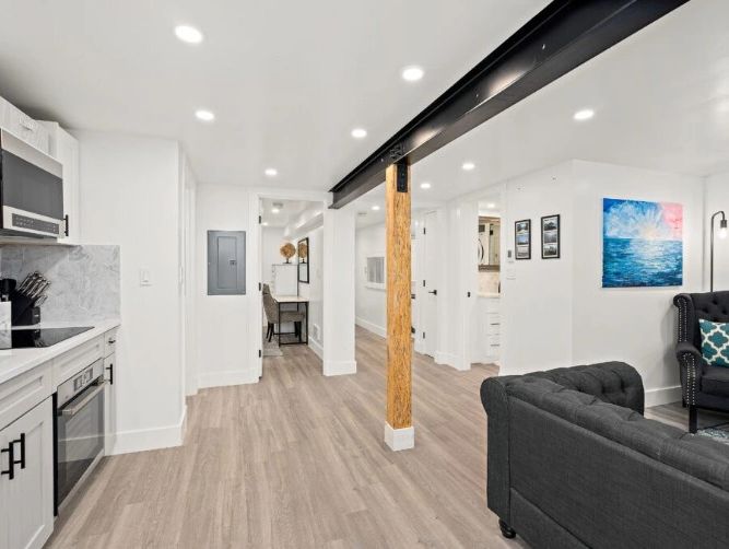 Basement ADU , also commonly known as a basement apartment, in-law unit, or secondary suite, is a self-contained residential living space created within the existing basement of a single-family home. Location: It's situated entirely or primarily underground, occupying the basement level of the main dwelling.