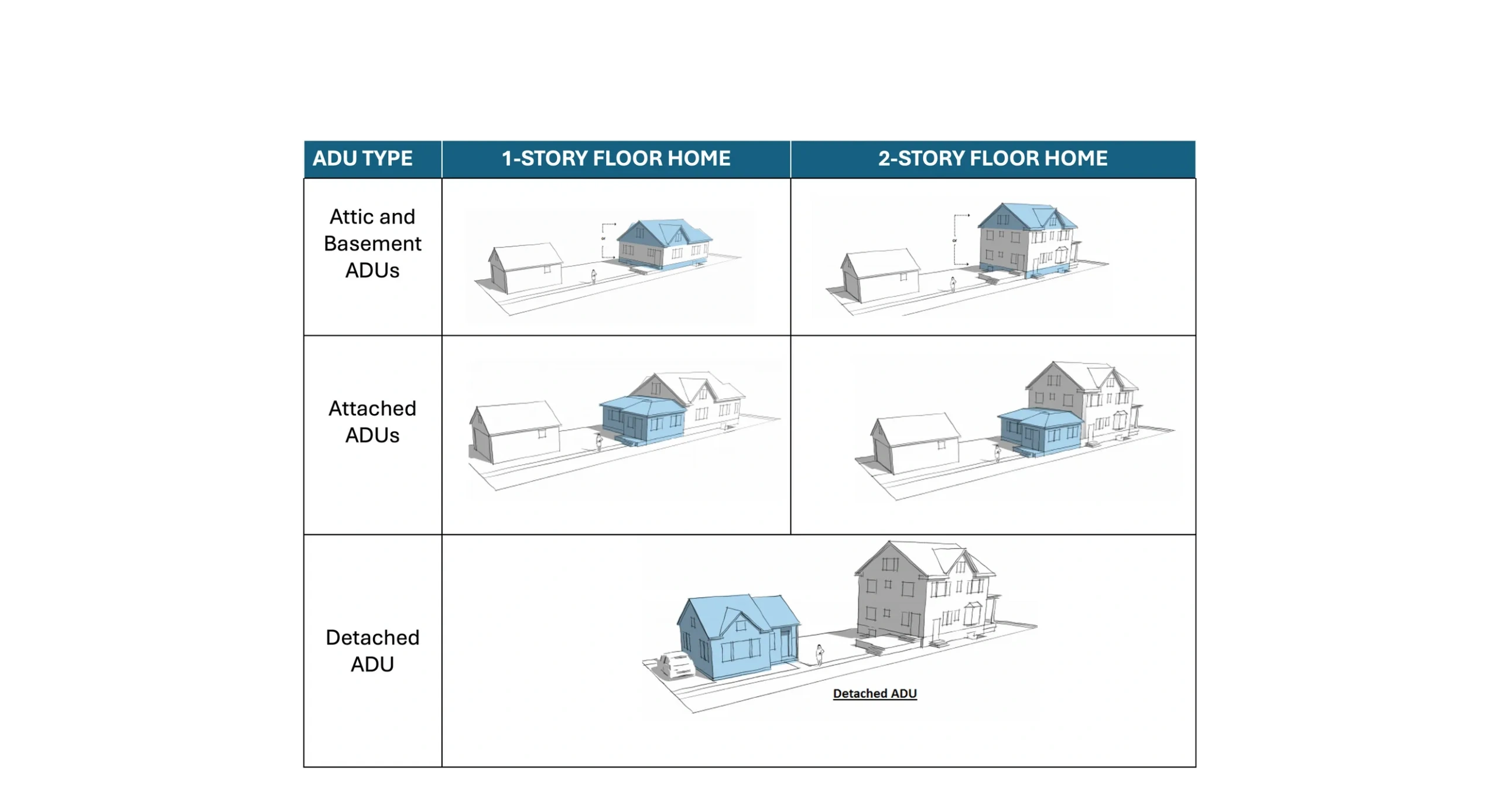 Each town Planning & Zoning departments support various ADU configurations, any limitations on your project will be determined during our complimentary feasibility study once you schedule your Design Consultation -- Book Today!